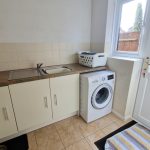 8’4 (2.6m) x 6’5 (1.9m), floor units, work top, tiled splash backs, space for washing machine, sink and drainer, radiator, tiled floor and door to rear garden.