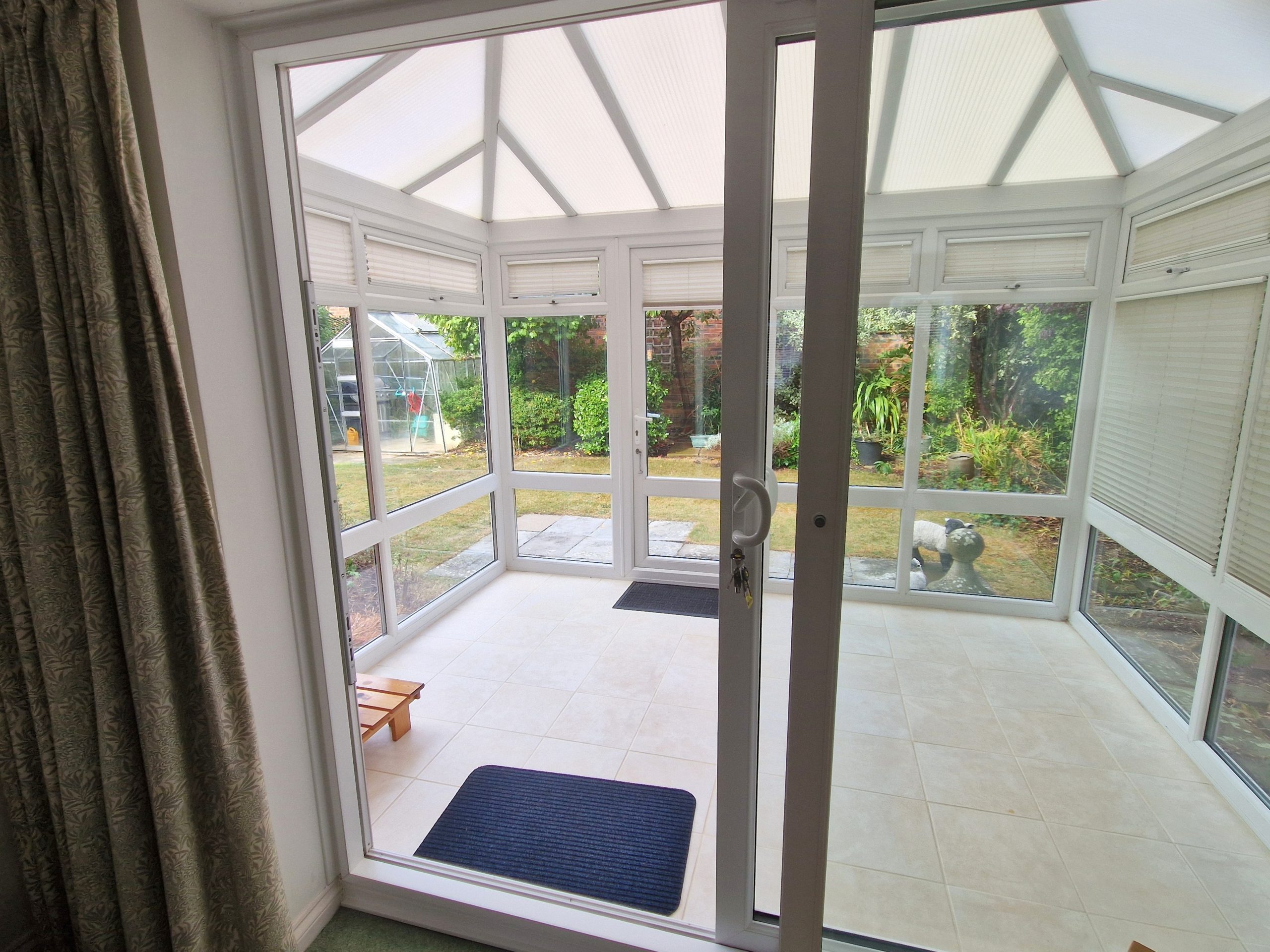 10’10 (3.1m) x 7’11 (2.2m), UPVC double glazed, polycarbonate style roof, tiled under floor heating and door to rear garden.