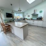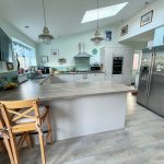 18’5 (5.61m) x 15’1 (4.6m) Also open to & incorporating an additional area, with an additional double glazed window & side external door, measuring 7’5 (2.26m) x 6’6 (1.98m). Double glazed double doors & window to the rear garden. Comprehensively fitted with a matching range of wall & base units, with contrasting work surfaces. Inset sink unit. Tiled surrounds. Built-in Bosch gas hob, extractor, double oven, integrated dishwasher. Additional plumbing & recess for washing machine & dryer units. Concealed wall mounted boiler.