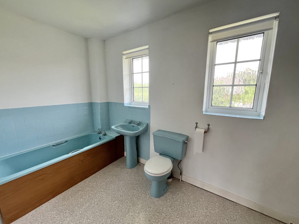 11’11 (3.38m) x 6’2 (1.88m), bath, WC, wash basin, part tiled walls, radiator/towel rail and vinyl style flooring.