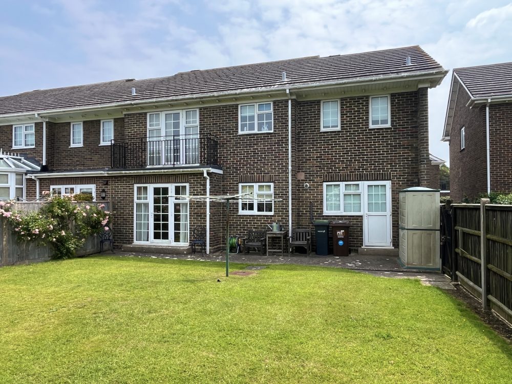 Mainly laid to lawn with flower and shrub borders, rockery. Concrete patio area, timber fencing, water tap, store shed and side gate.
