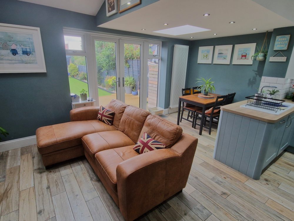 16’07 (5.05m) x 9’10 (2.99m). Maximum Measurements. Open plan family/dining area with ceramic wood style flooring, two skylights, spot lighting, radiator, double doors to rear garden.