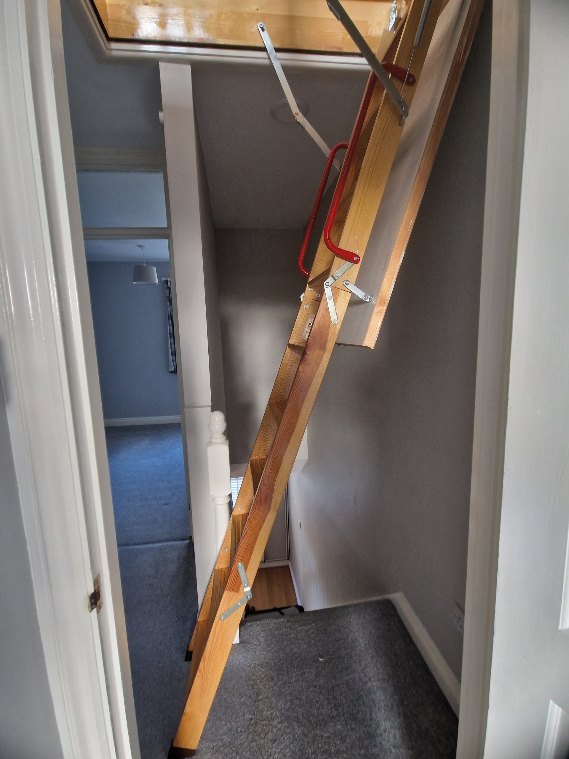 Carpet to stairs and landing. Access to converted attic space via pull down ladder.