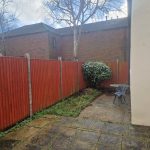 Southey facing rear garden mainly laid with concrete slab paving enclosed with timber fencing. Pedestrian side access gate, door to;
