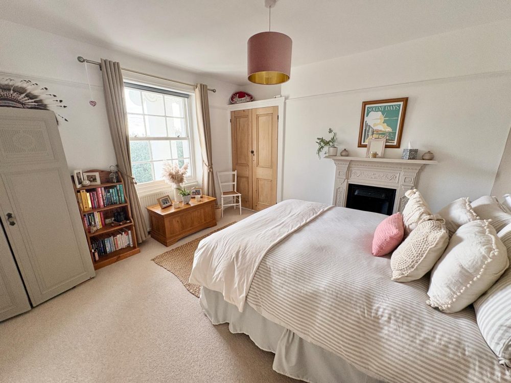 13’8 (4.17m) x 12’6 (3.81m), roof top Solent and Isle of Wight views. Fireplace, built in cupboard, radiator and carpet.