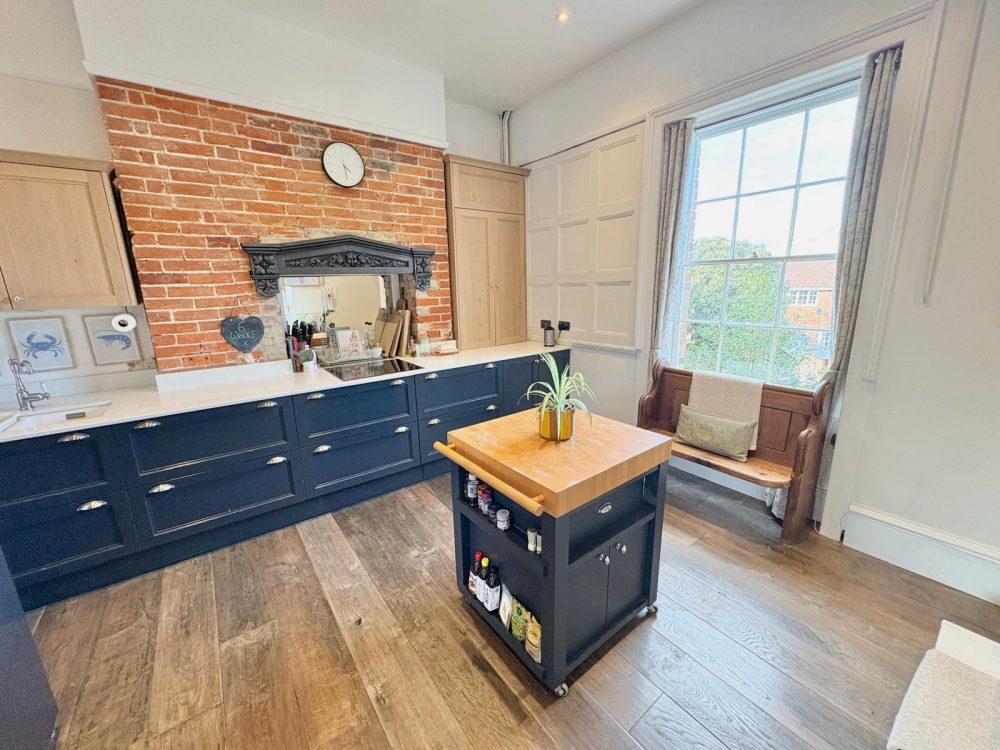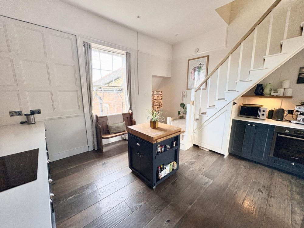 15’2 (4.62m) x 13’4 (4.06m), Wall, floor and drawer units, granite worktops with matching upstands, inset double sink mixer tap, electric oven, gas hob, space for washing machine and American style fridge/freezer. Cupboard housing gas fire boiler. Wood effect flooring and stairs to upper floor.