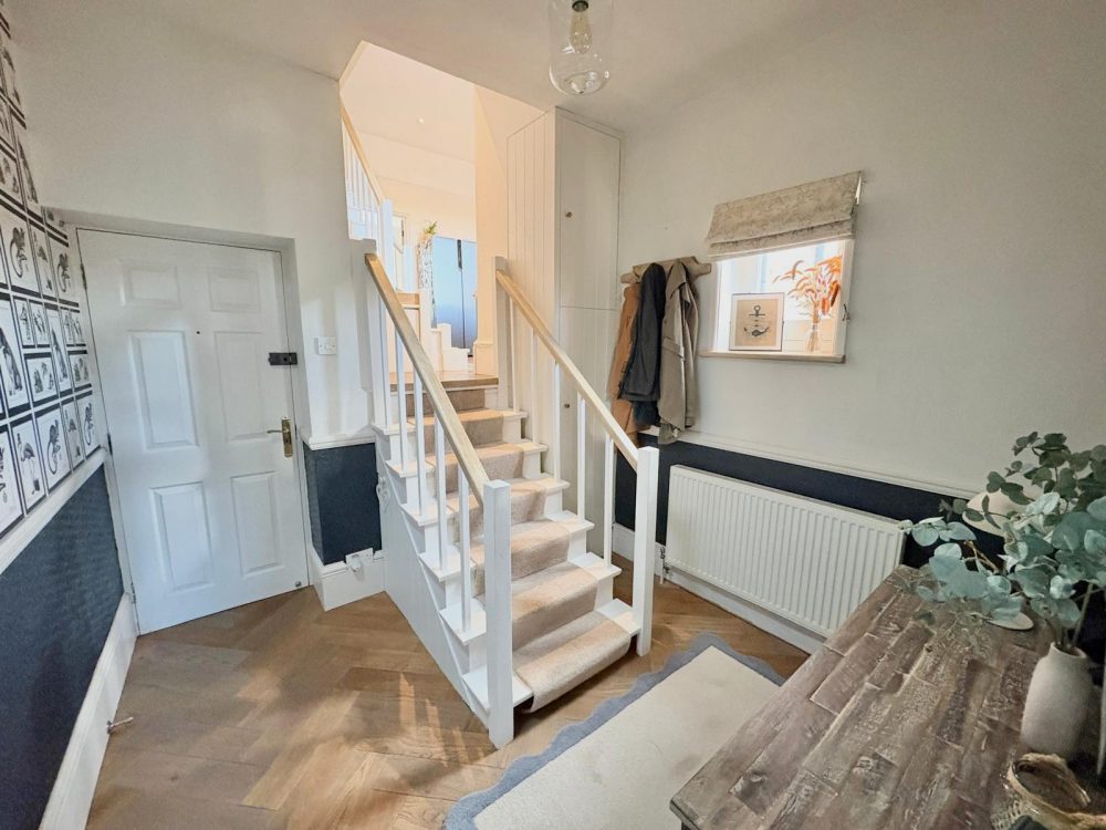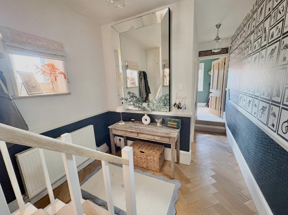 Built in cupboard, radiator, skylight and herringbone wood effect flooring.