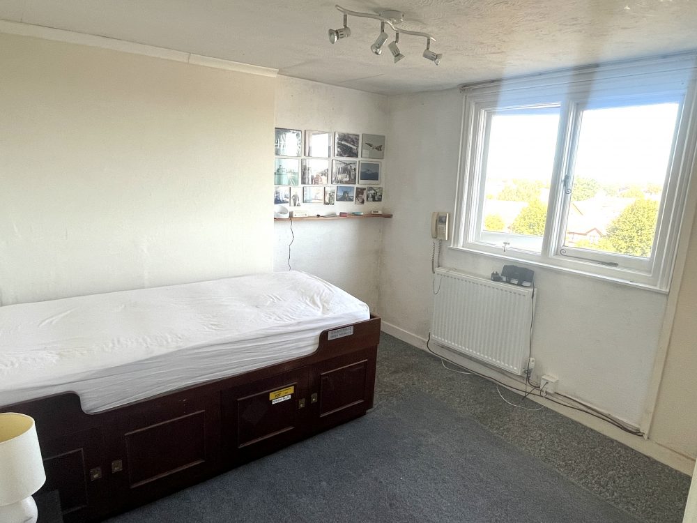 10’ (3.04m) x 9’10 (2.99m), Northly roof top views towards Portsmouth Harbour and Portsdown Hill. Radiator and carpet.