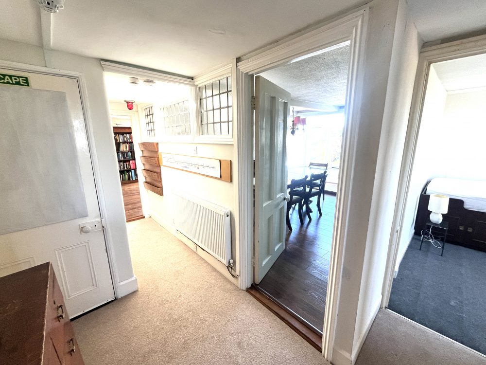 Door and private stairs to hallway. Entry phone, radiator, storage cupboard, new carpet, access to roof and loft space.