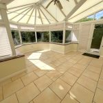 Tiled floor. Double glazed elevations, incorporating windows & doors to the rear garden. Polycarbonate roof.