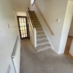 Stairs to first floor, under stair cupboard. Radiator, carpet to stairs and landing.