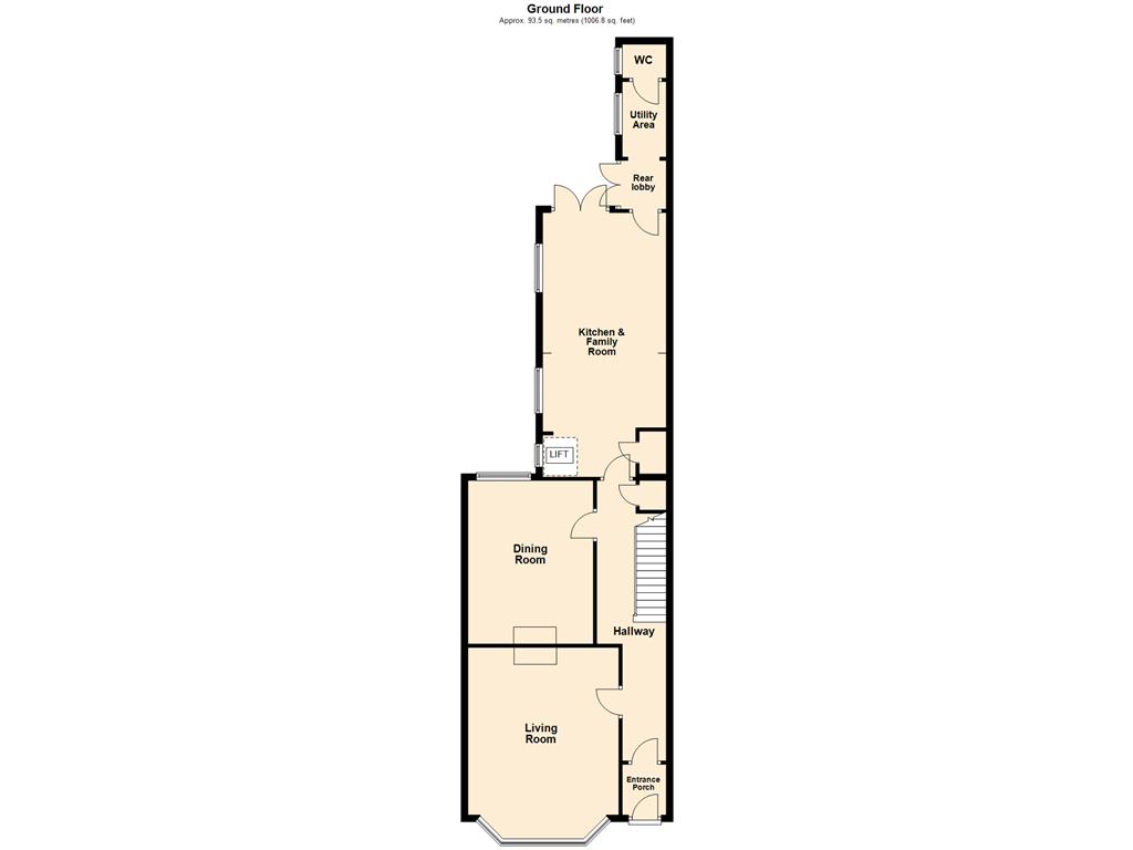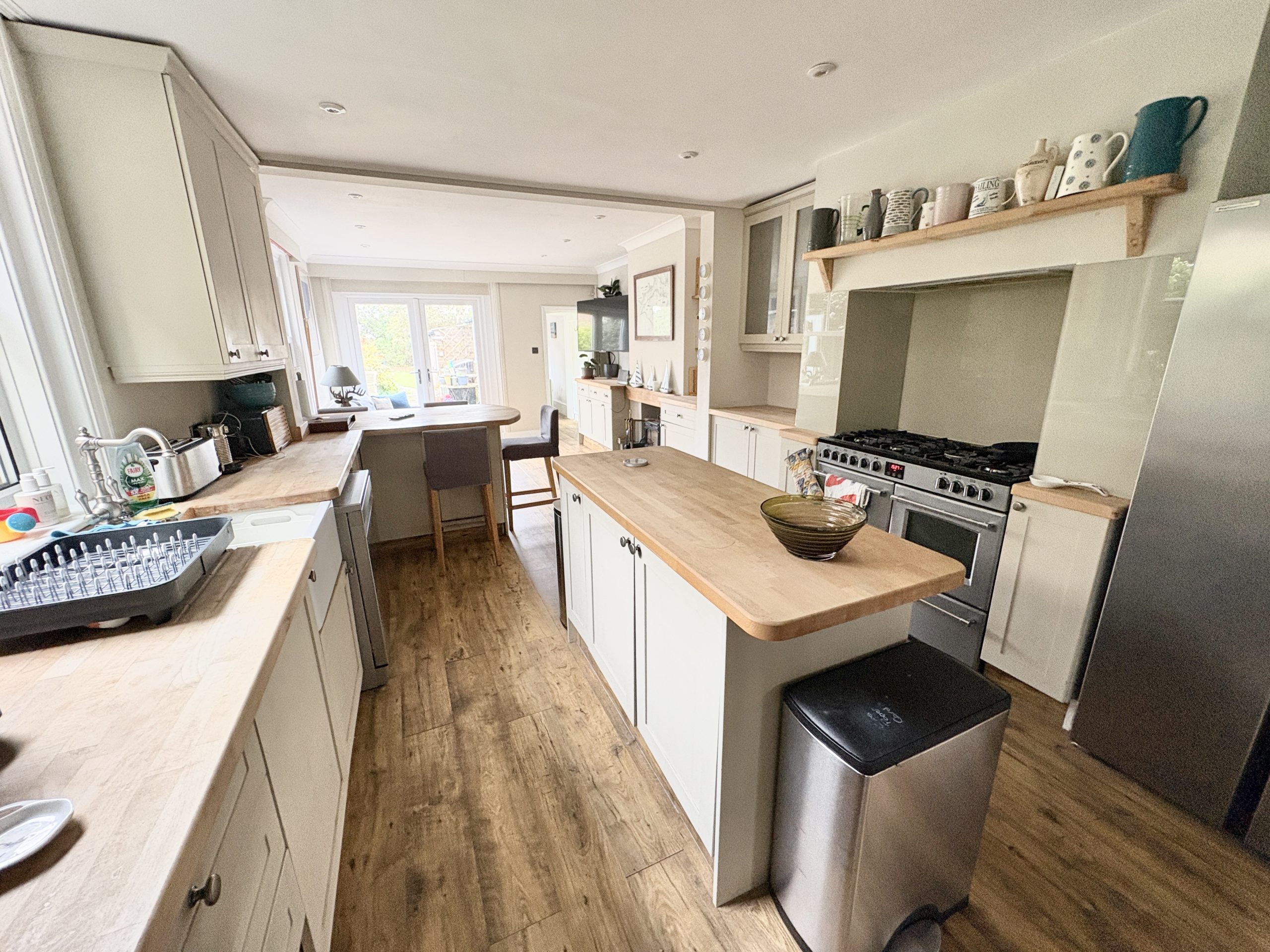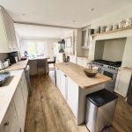 30’2 (9.20m) x 12’2 (3.71m), incorporating family room. Range of wall, floor and drawer units, butlers style sink, solid wood work tops, matching upstands, island and breakfast bar. Recessed range cooker with cooker hood over, space for fridge/freezer and dishwasher, cupboard housing gas fired boiler, lift to first floor and laminate style flooring.