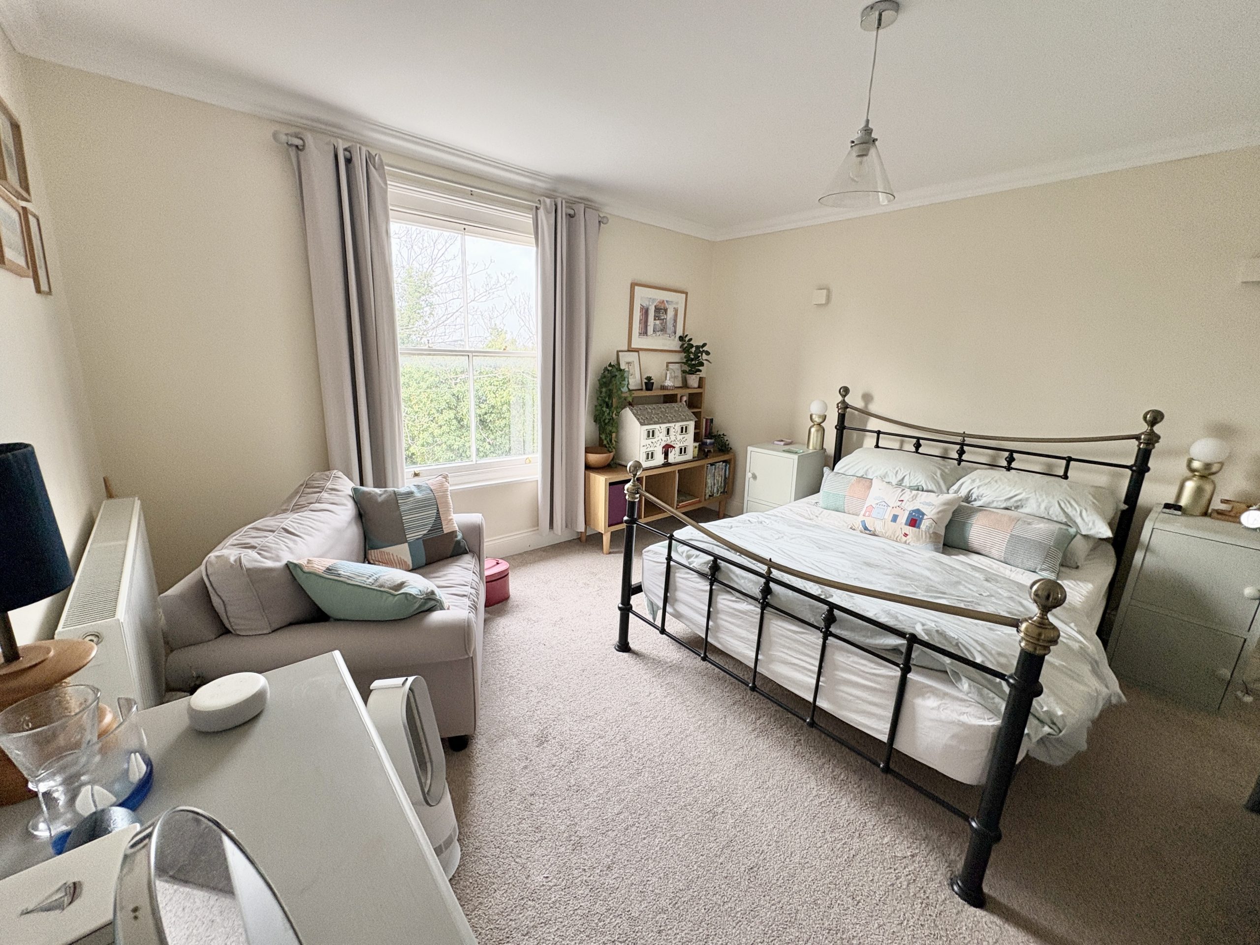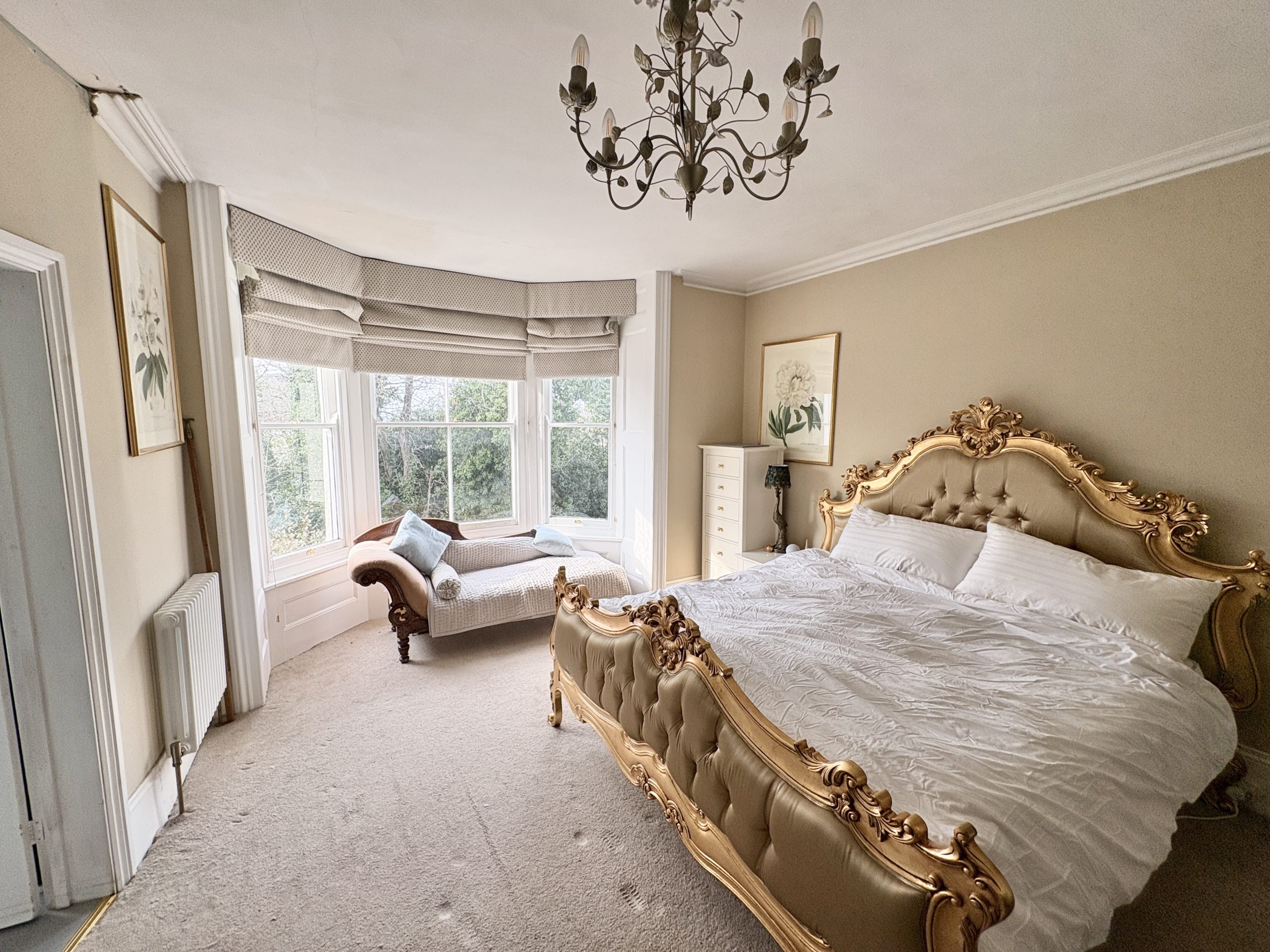 19’3 (5.88m) into bay x 16’3 (4.96m), fire place, built in cupboards, two radiators and carpet.