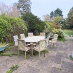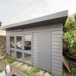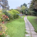 An established walled garden with artificial lawn, raised beds, paved patio areas and pathways, shrub borders, store sheds, log and coal stores, power, lighting and water tap. Rear patio area with home office 13’7 (4.17m) x 8’6 (2.62m), pathway and side gate leading to;
