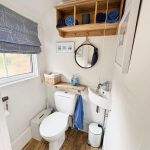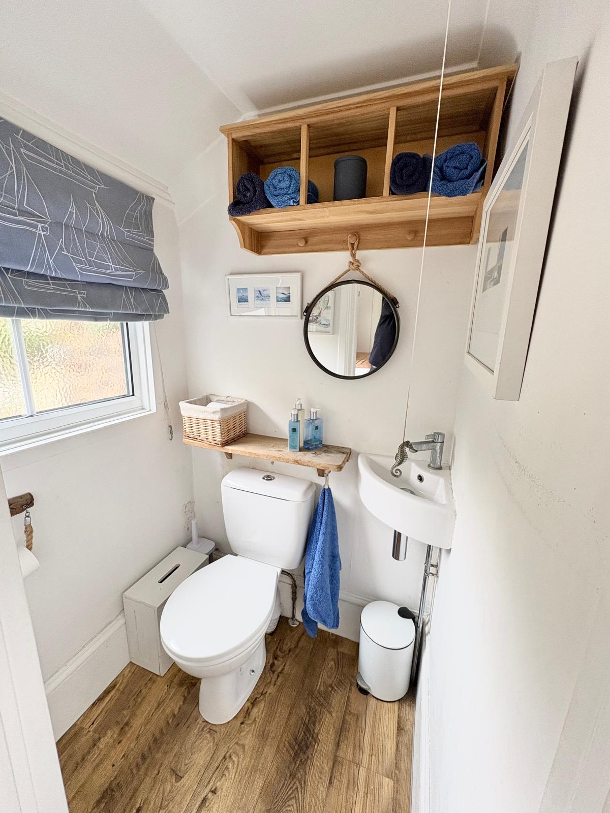 WC, corner sink and laminate style floor.