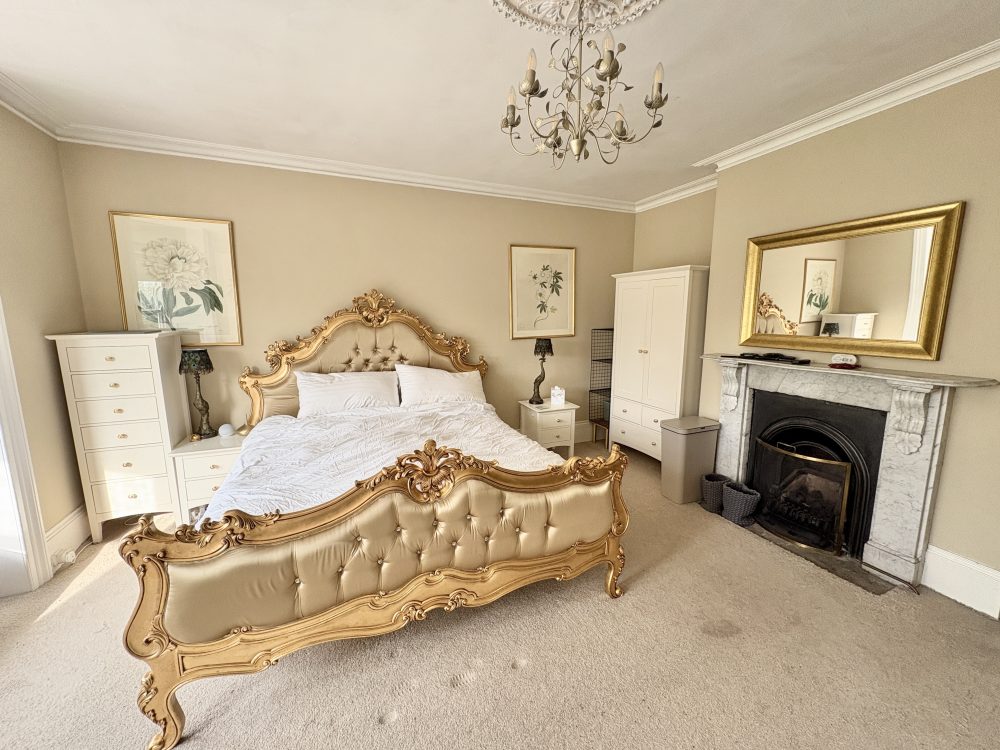 19’3 (5.88m) into bay x 16’3 (4.96m), fire place, built in cupboards, two radiators and carpet.