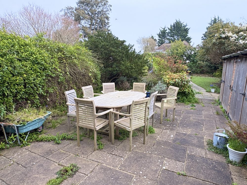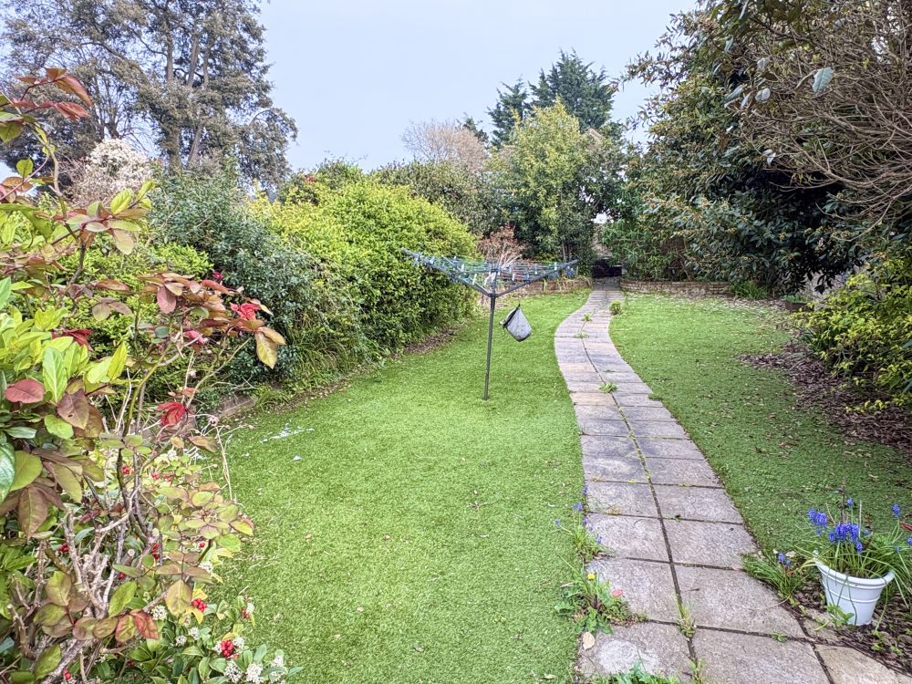 An established walled garden with artificial lawn, raised beds, paved patio areas and pathways, shrub borders, store sheds, log and coal stores, power, lighting and water tap. Rear patio area with home office 13’7 (4.17m) x 8’6 (2.62m), pathway and side gate leading to;