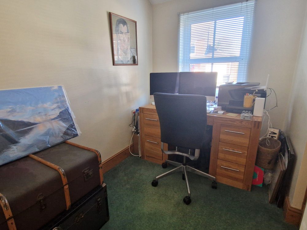 14’11 (4.54m) x 6’4 (1.93m), Two sky lights, eaves storage, radiator, laminate style floor.