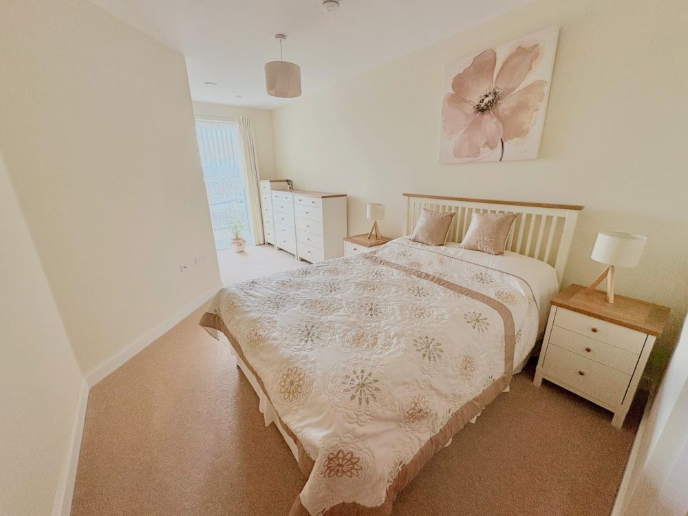 7’2 (2.18m) x 6’8 (2.03m). Walk-in shower with handrail, towel rail, underfloor heating, emergency pull cord, hand wash basin and WC. Tiled floor and half tiled walls.