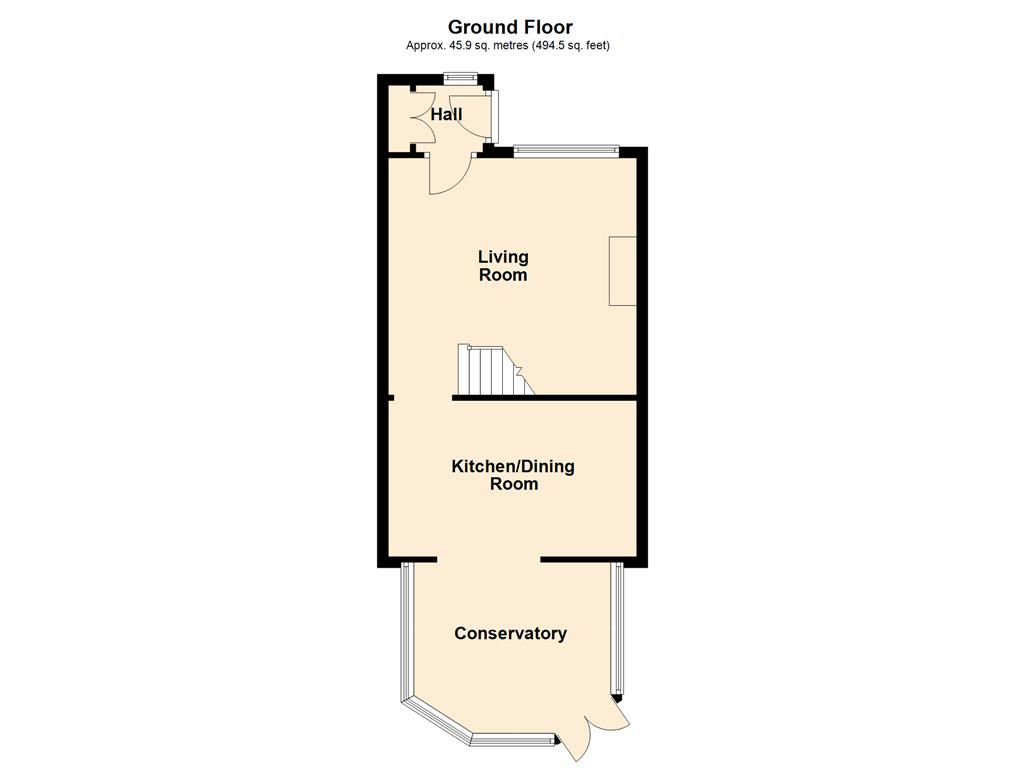 14’9 (4.49m) x 14’1 (4.29m), radiator, carpet and stairs to first floor.