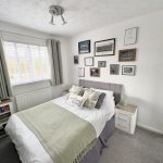 10’4 (3.14m) into recess x 9’5 (2.87m), built in wardrobe cupboards, radiator and carpet.