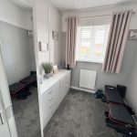 Carpet, storage and meter cupboard.