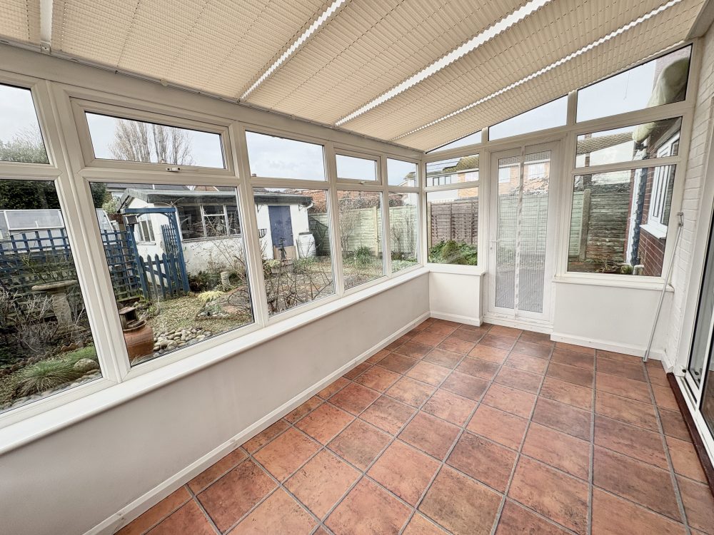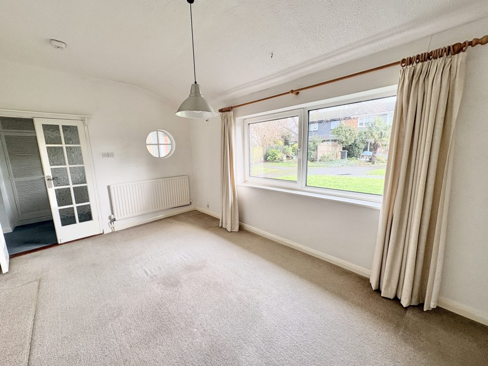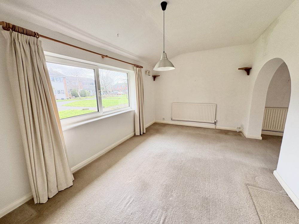 17’4 (5.28m) x 15’7 (4.74m), Feature fireplace with brick surround and wooden mantle. Two radiators, under stair cupboard, carpet, sliding patio doors to conservatory and archway to;