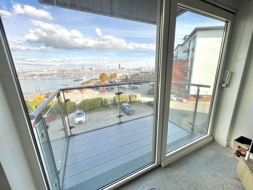 23’6 (7.2m) x 16’10 (5.13m) MAXIMUM MEASUREMENTS. Double glazed doors providing impressive harbour views & access to an enclosed BALCONY/TERRACE.