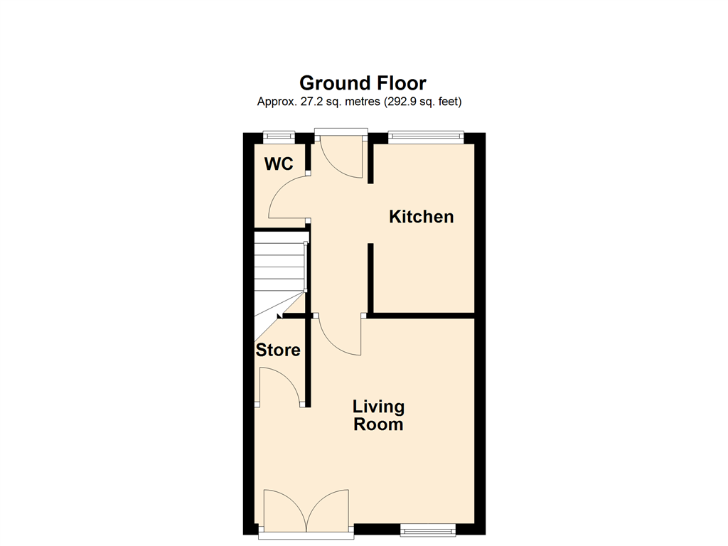 13 (3.96m) x 12’2 (3.71m). Double glazed window & double glazed double doors overlooking the rear garden. Large built-in understairs storage cupboard. Radiator.