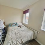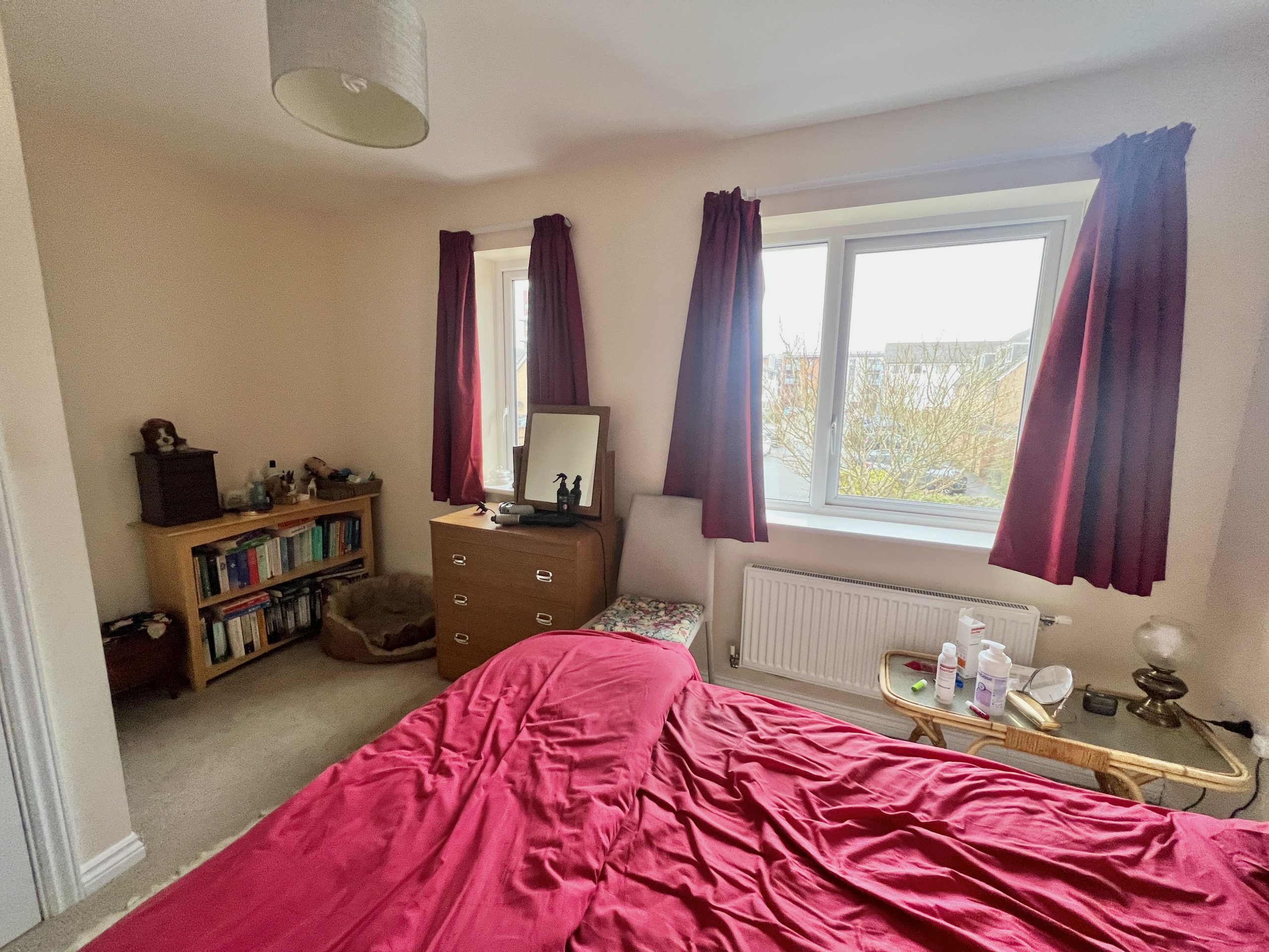 11 (3.35m) max. x 7’2 (2.18m) - EXCLUDING THE WARDROBE SPACE. This area has hanging & shelved storage space, is the full width of the room, with sliding mirrored doors. Two double glazed windows, over looking the rear garden. Radiator.