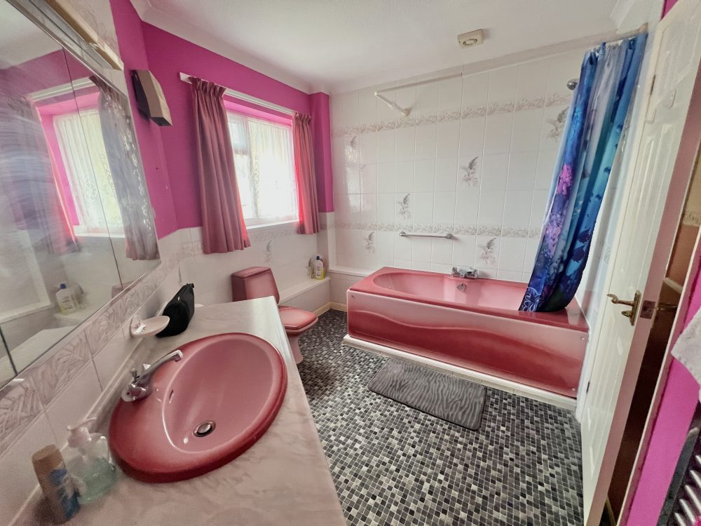 Double glazed window to the front elevation. Fitted with a coloured suite, comprising a large bath, WC & vanity unit providing storage space & incorporating an inset sink unit. Tiled surrounds. Heated towel rail.