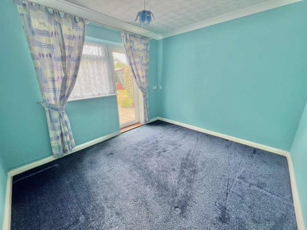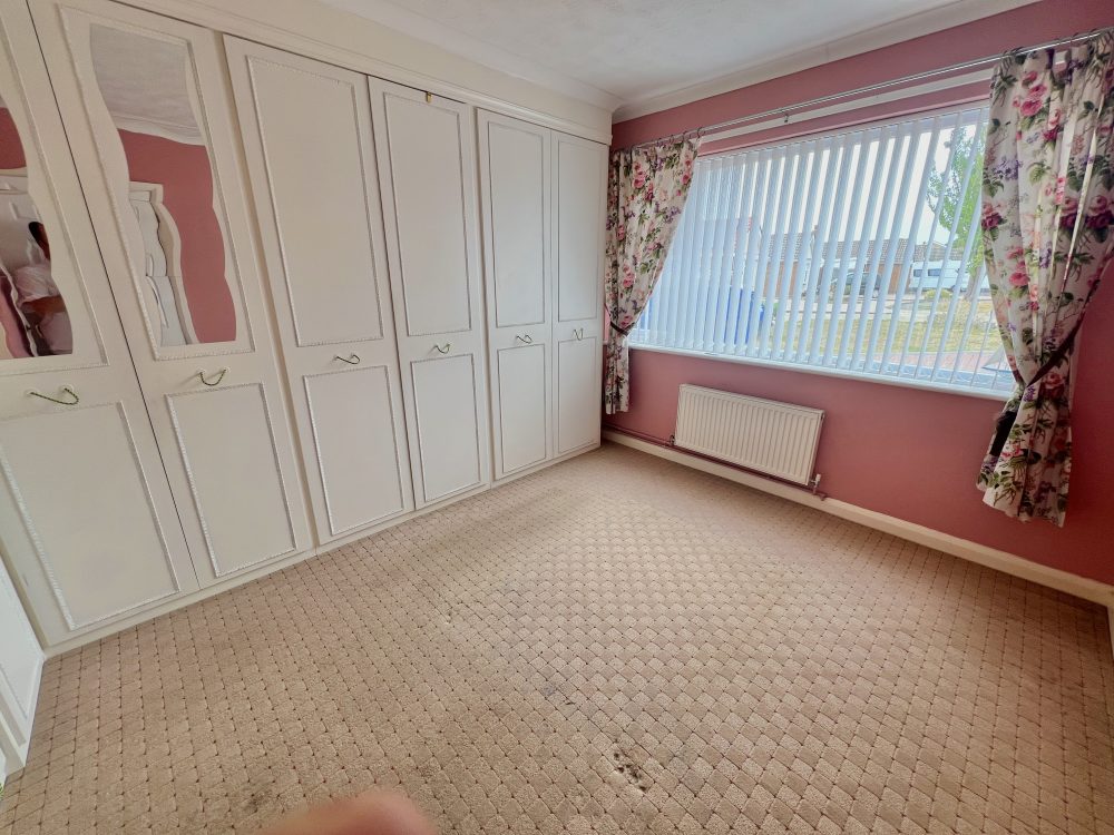16 (4.88m) x 12 (3.66m) MAXIMUM MEASUREMENTS - AN IRREGULAR SHAPED ROOM. Double glazed window & door to the rear garden. Fitted wardrobes & cupboards. Radiator. Door to ;