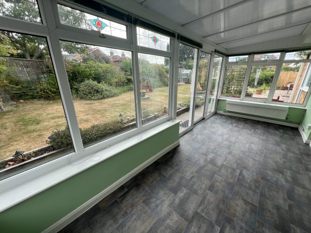 17’6 (5.33m) x 9’7 (2.92m) - MAXIMUM MEASUREMENTS. Of UPVC double glazed construction, with a polycarbonate style pitched roof, incorporating windows & doors to rear garden. Radiator.