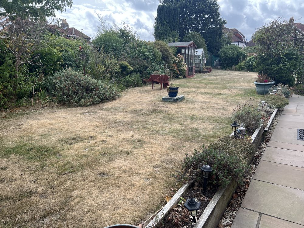 The plot widens significantly to the rear, providing a sizeable rear garden. Being largely laid to lawn, there are also paved areas, mature shrubs & various storage facilities.