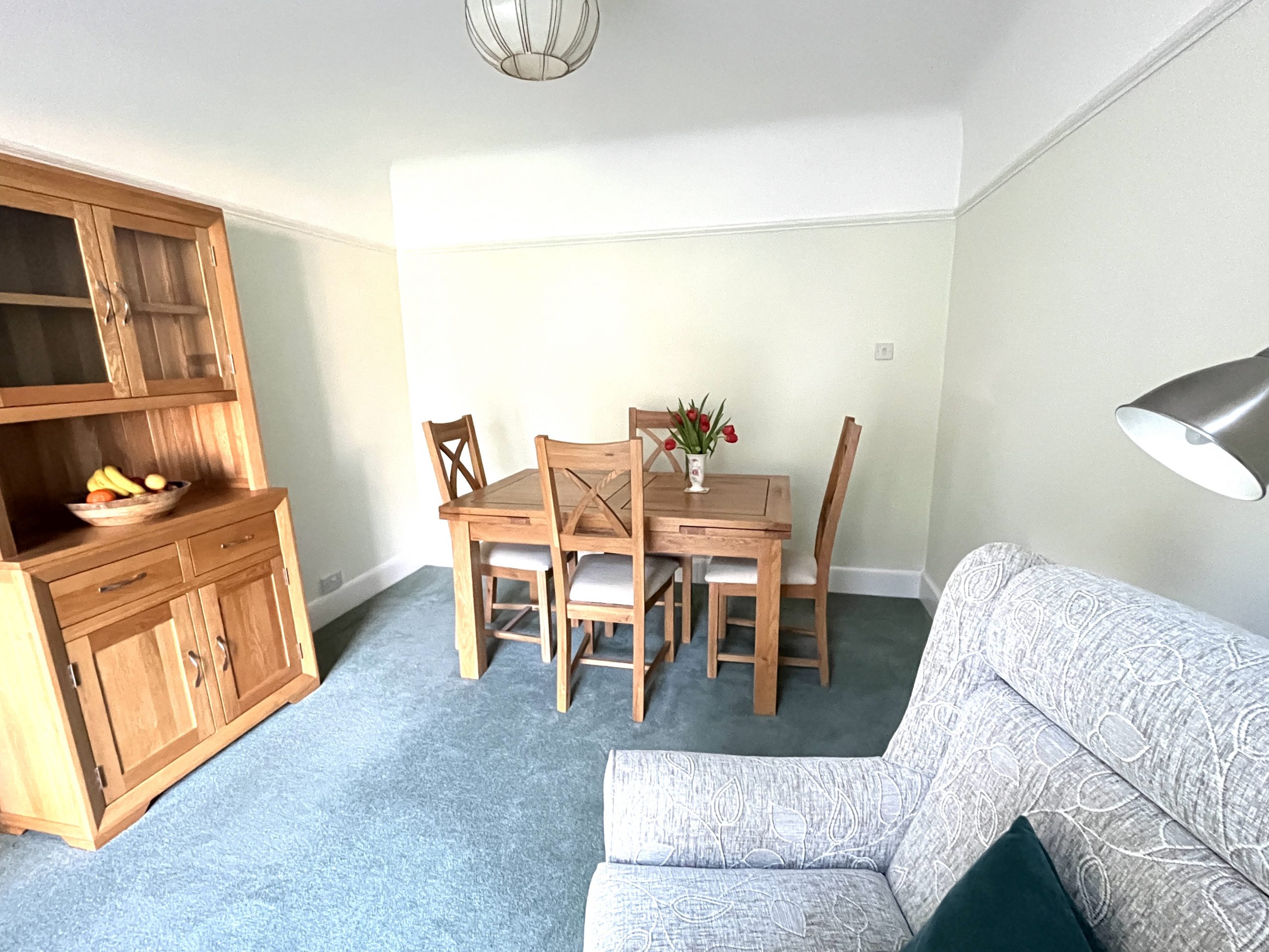 14’7 x 12’5 (4.44m x 3.78m) Into Bay. Fire place with electric fire, storage heater, carpet.