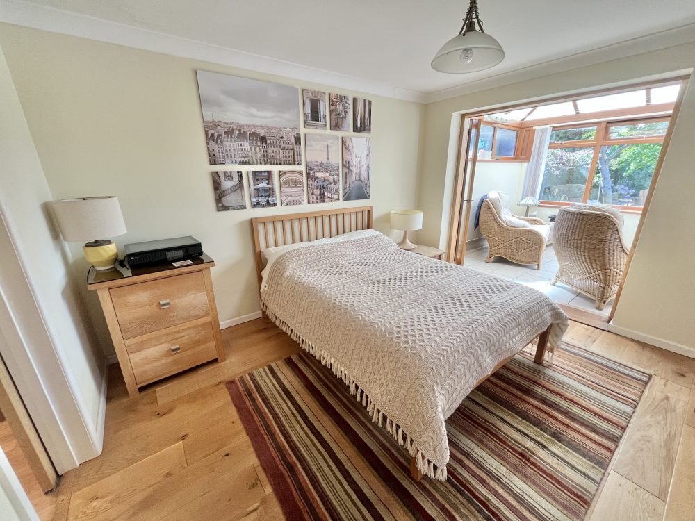 11’8 x 11’5 (3.55m x 3.47m), Walk in cupboard, wood floor, radiator, bi-fold doors to conservatory, door to;