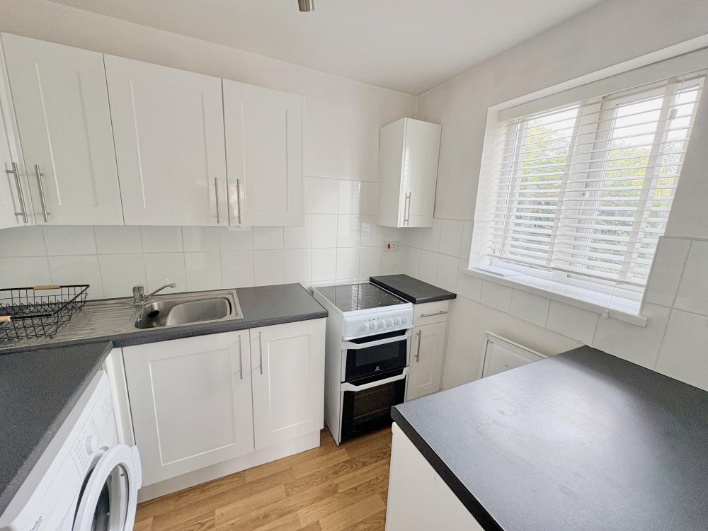 8’2 (2.48m) x 6’7 (2.00m), wall and floor units, work surfaces, sink and drainer, tiled surrounds, electric cooker. Space for fridge/freezer and space for washing machine. Wood effect flooring.