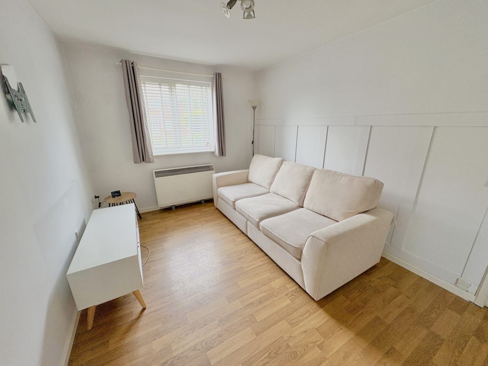 10’8 (3.25m) x 7’11 (2.41m), Built in wardrobe cupboard, wood effect flooring and electric heater.