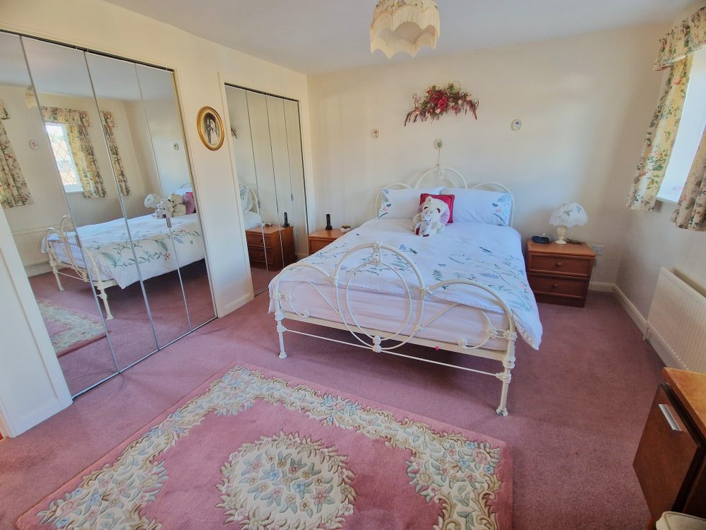 9’8 (2.95 m) x 8’9 (2.67 m), built-in wardrobes, radiator and carpet.