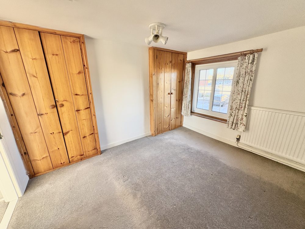 11’01 (3.37m) x 11’00 (3.35m), Into Wardrobe. Built in wardrobes, loft access, radiator, carpet.