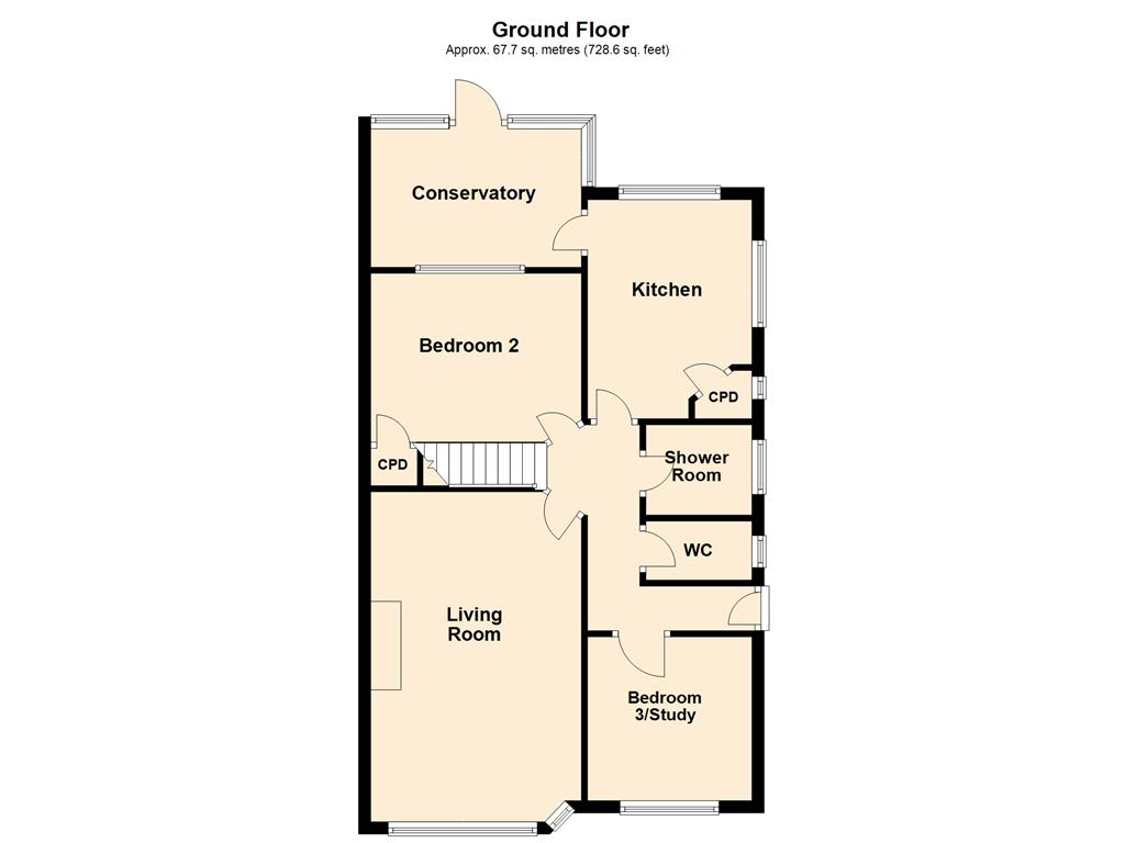 9’2 (2.79m) x 8’11 (2.71m), built in cupboard under stairs, radiator and carpet.