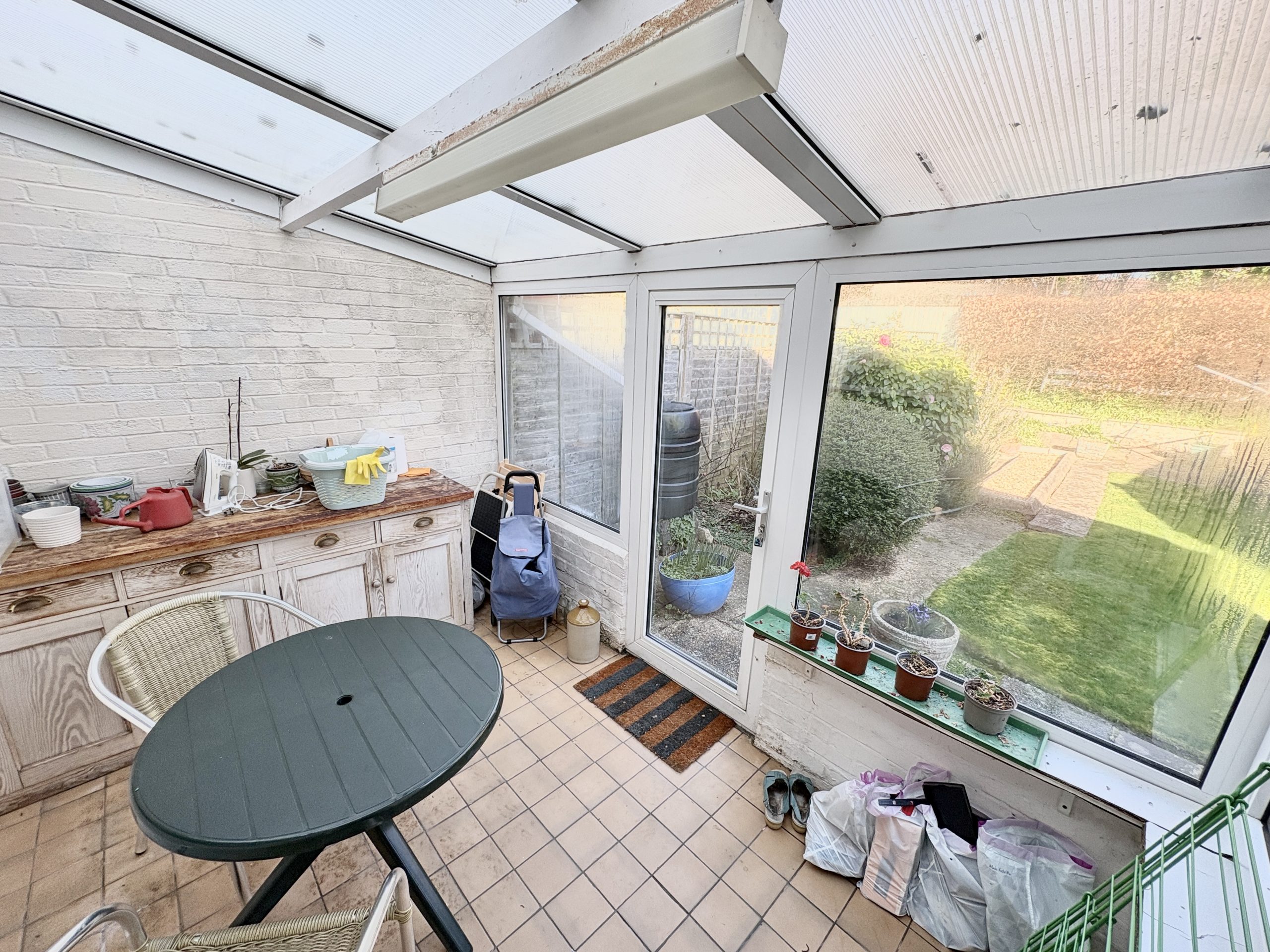 11’1 (3.37m) x 11’6 (3.50m), UPVC double glazed, polycarbonate style roof, tiled floor, door to rear garden.